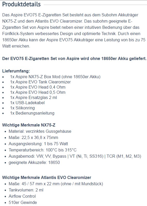 Aspire EVO75 E-Zigaretten Set