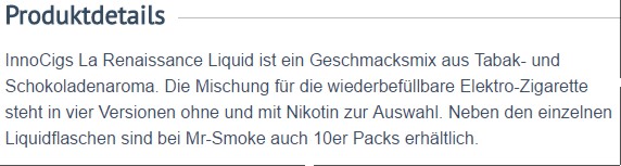 La Renaissance Tabak-Schokoladen Aroma - Liquid für E-Zigaretten